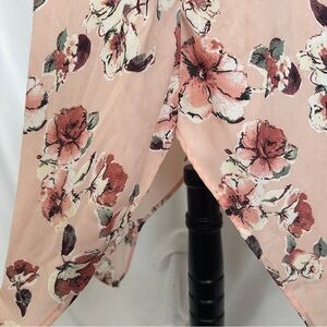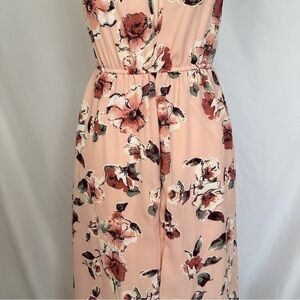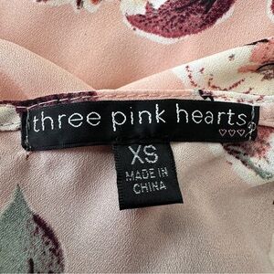 Three Pink Hearts Dress Womens XS Floral Print Maxi Pink High Low Hem Ruched. There is a tiny stain on the front part. Please review photo. Still in good preowned condition.