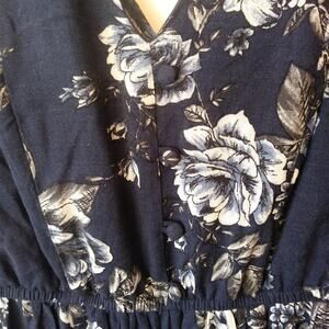 Three Pink Hearts Size M Floral Maxi Dress Blue Cottage Country Prairie Festival