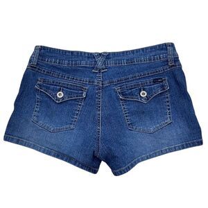 Three Pink Hearts Jean Short Womens Sz 11 Blue Double Button Ramie Blend Stretch