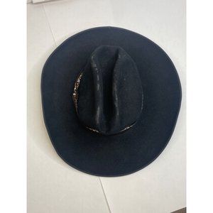 Three Points Western Store Men 7 1/8 Wool Fedora Hat Black Aztec Ribbon