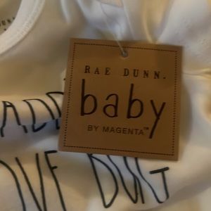 Three Rae Dunn onesies The first one says daddy’s love bug. The second one is tiny human and then the third one is a little lady bugs with flowers. Brand new still have tags on them.