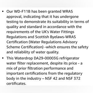 This Waterdrop DA29-00003G water filter replacement by Waterdrop filters off materials from your water. These include chlorine, taste and odor, and other suspended particles tested by the third-party laboratory.