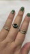 Three Rhinestones Black Enamel Open End Rings Set