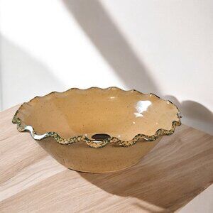 Three Rivers Pottery, 1990, by Linda. Approximately 10" in diameter, and 3" tall. No problems. Minor imperfections/inconsistencies as to be expected from the handcrafting process.