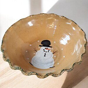 Three Rivers Pottery Scalloped Ruffled Edged Snowman Bowl 1990 Linda