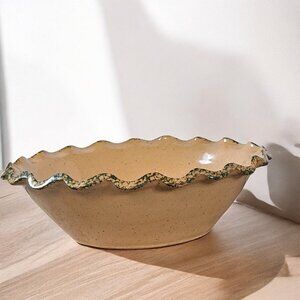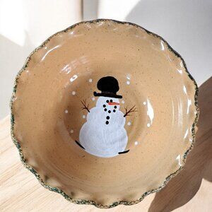 Three Rivers Pottery Scalloped Ruffled Edge Snowman Serving Bowl 1990 Linda 10"