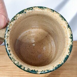 Three Rivers Pottery Snowman Mug Holiday Christmas Winter Green Spongeware