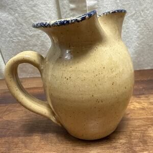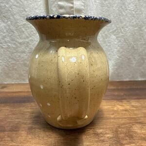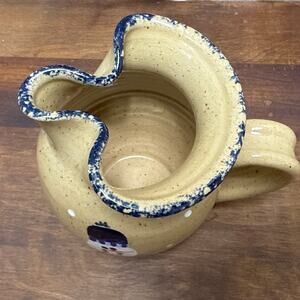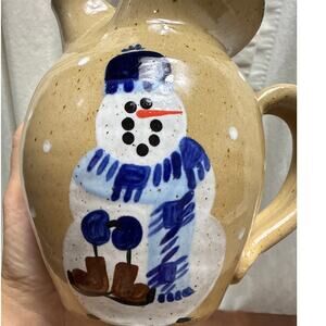 Ceramic pottery creamer / pitcher made by Three Rivers Studio; part of The Snowman Family Tree Collection "Teddy" from 1999. No chips, cracks or blemishes. Please reference the photo's for measurements. Great for cream, maple syrup, pancake batter or used as holiday decor.