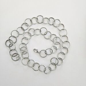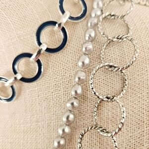 Reversible navy blue and silver necklace measures approx. 20" long.