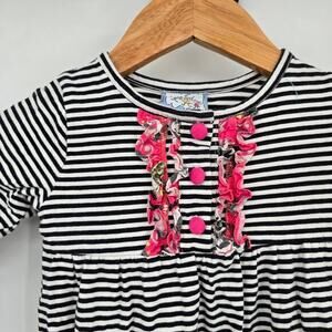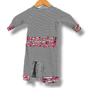 Three Sisters Vintage Baby Girl Striped Floral Ruffle Jumpsuit Size 18M