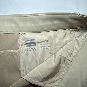 Three Sixty Six Dress Shorts Womens 12 Tan Polyester Flat Front Casual Golf EUC