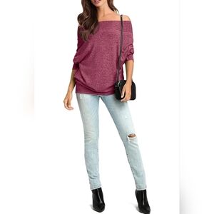Cozy Women's Off Shoulder Lightweight Oversized Soft Stretchy Breathable Sweater, Wine Red XS/S