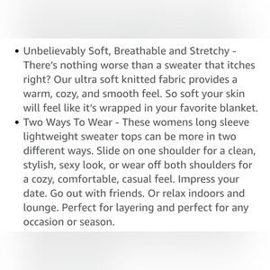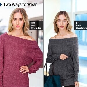 Three Sixty Six Women's Off Shoulder Soft Stretchy Breathable Sweater, XS/S