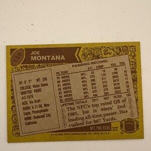 #156 Joe Montana, 49ers QB 1986 card