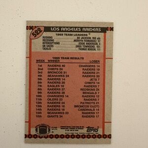 #522 Bo Jackson, Los Angeles Raiders 1989 season
