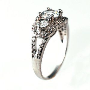 Three Stone Diamond Stimulant Sterling Silver Wedding Engagement Promise Ring 8