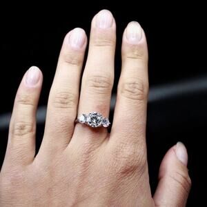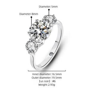 Three Stones 925 Silver 2ct Moissanite Cubic Zirconia Ring Size 9