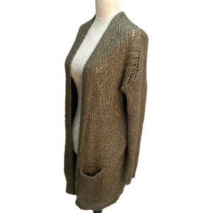 Three Stones Olive Green Long Open Front Cardigan Size S