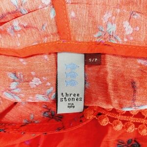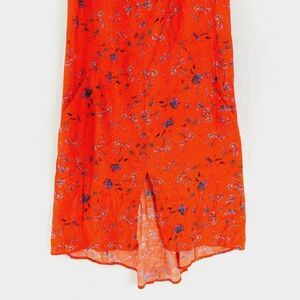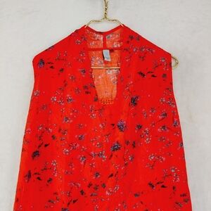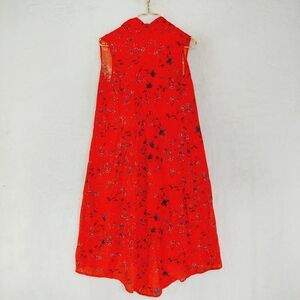 Three Stones Viscose/Linen Red Floral Sleeveless Pockets Midi Dress P6495