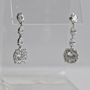 Three Teardrop Cut CZ Linear Drop | White Gold