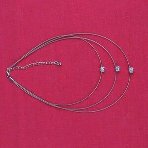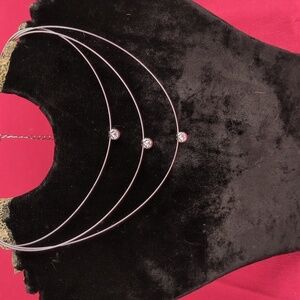Three different lengths of wrapped wire, with a free floating cubic zirconia in silver setting on each one.