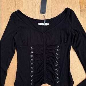 Three Times - Cinnamon Long Sleeve Eyelet Top in Black