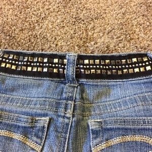 Cute top and jean short bundle. All in great used condition. Shorts are missing a few studs around waistband area but hardly noticeable. Looks like there actually still intact when looking at the shorts, but you can see there missing when looking up real close. Three tops, two short sleeve and one long. Very minimal wear an the pink one has all its embellishments. Two tops are sz. 6, ones a 6x and the shorts are a 6s (slim)