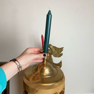 Vintage brass candle holders, angel figurine candle holders, brass holiday decor, celestial candle stands, retro mid-century brass art, round brass taper candle holder, bohemian vintage accents, Art Nouveau brass, holiday table centerpiece, collectible brass candle holders, timeless home accents, antique-inspired candle decor, ornamental brass sculptures.