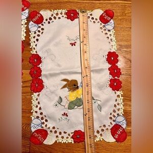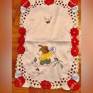 Three appliquéd Bunny placemats Lusterware serving bowl Daffodils Spring Easter