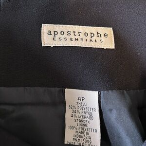 First skirt - Chic black skirt by Apostrophe, size 4P; skirt 2 - Loft, size 0; skirt 3 - 212 Collection, size 4, Skirt 3 fully lined. All are Versatile and stylish.
