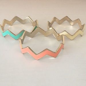 Three in one! Blue off white and pink bangle bracelets that fit together perfectly! Wear one at a a time, two or three to coordinate with your outfit!