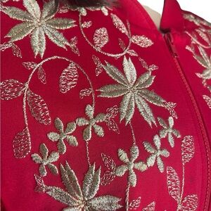 embellished with gold flowers on the front