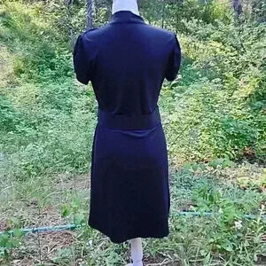 slight gather at dress neckline, short sleeve with gather design, slight collar on back of dress/cardigan