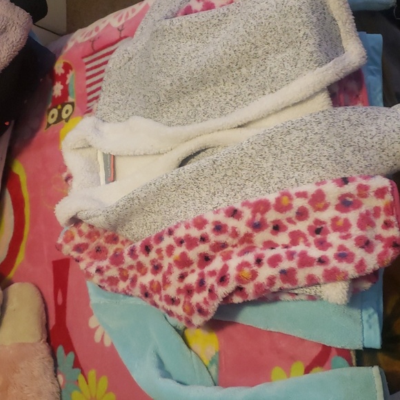 Three girls jacket or sweaters two with zippers and one is just open there different sizes but are the same length probably fits a size 7/8 are in good condition really warm and soft.