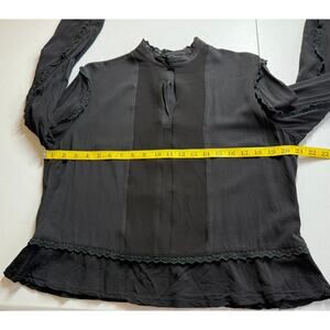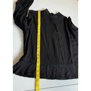 Three of Something Blouse Womens XL Black Lace Trim Keyhole Front Crew Neck Long Sleeve Dark Academia Business Casual Classic