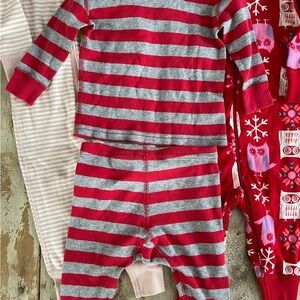 Pink stripes NWT. Owls EUC. Red/gray pair is freebie. Happy to discount with other listings.