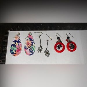 Three pairs of ladies earrings - beaded and colorful teardrops