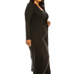 3 Piece Outfit Ribbed knit Tank Top, Open Front Cardigan and Full Length Leggings