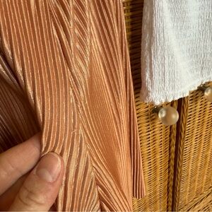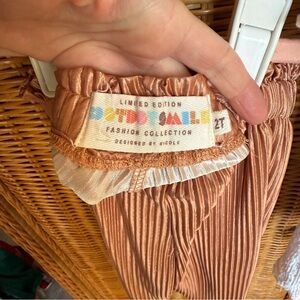 The orange pleated palazzo pants are so cute with the crop top! Minor snags, pictured