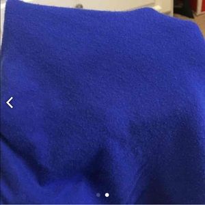3 longsleeved T-shirts - royal blue, purple, and white. Thin and stretchy; very soft and comfortable. The blue shirt has holes in the armpit seams, but they can be easily sewn. It also has a stain on the back - it just looks wet. See second picture! The purple shirt is in good condition, just a little faded from being washed. The white shirt is also in good condition; it just has minor deodorant stains, as to be expected with a white shirt. 93% cotton 7% spandex. Machine wash and tumble dry.