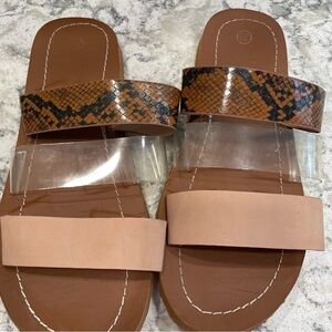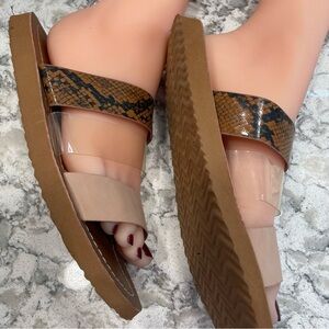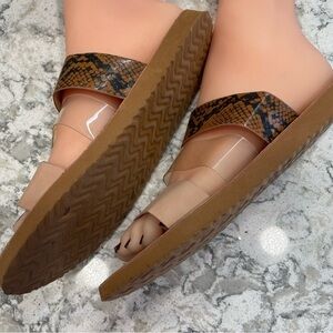 Three strap sandal beige clear snake skin flip flop material super comfy 8