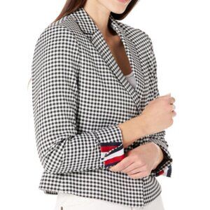 Three-Button Cropped Checkered Blazer