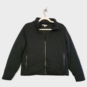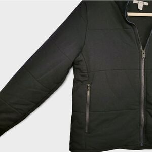 Excellent pre loved condition. This super soft quilted jacket has a mock neck, full zip, slightly cropped and boxy fit.