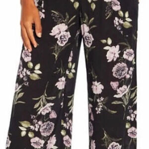 Three Dots Wide-Leg Pant Gorgeous Romantic Flora Purple Black & White Pattern