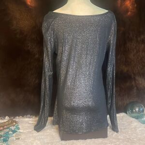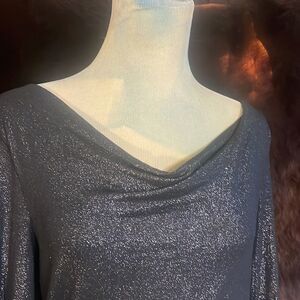19 inches pit to pit and approximately 27 inches long. Has a beautiful silver shimmer to it and in excellent condition