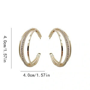 Beautiful Three Layers C-Shape 18K Gold Plated Hoop Earrings-Intricately Inlaid with Shiny Rhinestones, Elegant Earrings for Daily Occasion, All Seasons