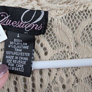 Three-Quarter Sleeve Beige Lace Kimono Duster With Fringe Large