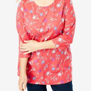 This perfect tunic hits at the perfect length – right at the upper thighs. Made in a multitude of gorgeous prints, prettify your everyday look with something bright and colorful. A relaxed fit is oh-so comfy and the three-quarter sleeves are expertly shape to allow easy movement. Pure cotton jersey knit is easy to care for and will look and feel good every time you wear this.