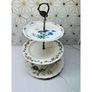 This elegant three-tier dessert stand is handcrafted from carefully selected vintage china, making it a truly unique addition to your table settings or décor. Perfect for weddings, bridal showers, tea parties, or as a thoughtful gift for vintage lovers, this stand adds timeless charm and sophistication to any occasion. Each tier features a unique vintage plate:
