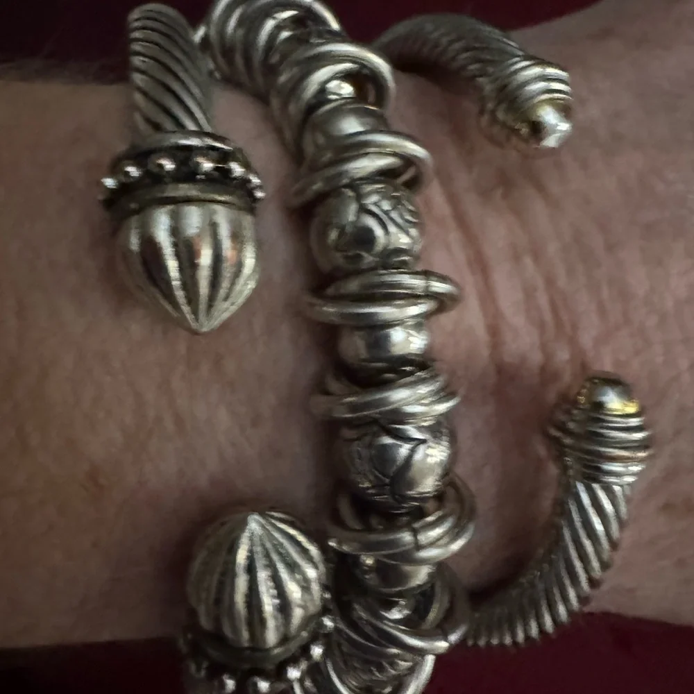 Silver brackets one slide on beautifully paired as stackable or wear alone.